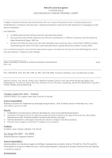 Hello! I’m a cybersecurity engineer with 4 years of experience. I have a lot of experience in network security — firewalls, VPN, IPS/IDS, etc. I am currently the lead of a small team implementing and supporting information security products at a vendor. Built the team from scratch and set up processes. I have experience mentoring and teaching cyber security.